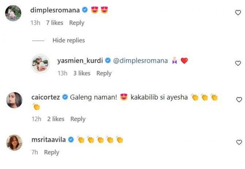 Ilang celebrities ang natuwa sa piano skills na ipinamalas ni Ayesha Zara, ang unica hija nina Yasmien Kurdi at Rey Soldevilla. Kabilang dito ang Kapamilya talent na si Dimples Romana at Chynna Ortaleza na nag-react sa Instagram post ng aktres.