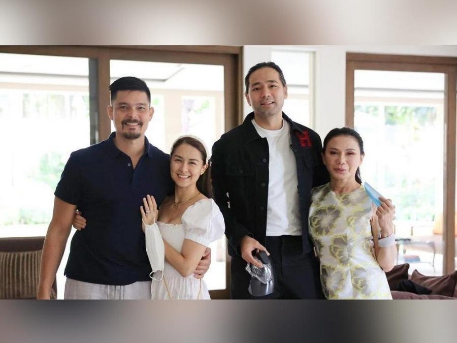 Vicki Belo delightfully shared a photo with her husband, Hayden Kho, and Kapuso couple Dingdong Dantes and Marian Rivera who paid them a visit for the first time since the quarantine began.