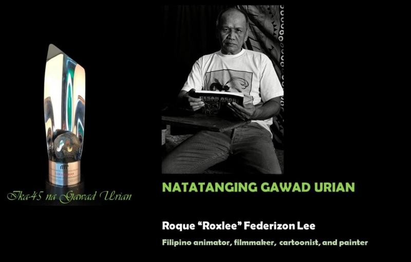 Pinangaralan din ng Natatanging Gawad Urian si Roque “Roxlee” Federizon Lee for his work as an animator, filmmaker, cartoonist, and painter. He is best known for his comic strip Cesar Asar, which he wrote together with his brother, Monlee.