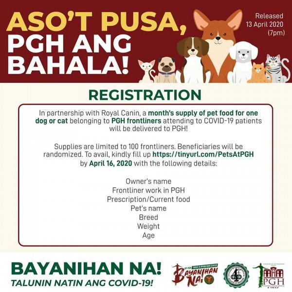 The Philippine General Hospital (PGH) gives back to their medical frontliners by providing food for one of their sources of joy and strength amid the Coronavirus Disease (COVID-19) pandemic: their dogs and cats!