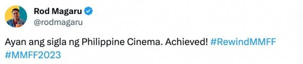Content creator Rod Magaru also said, “Ayan! Ang sigla ng Philippine cinema. Achieved!”