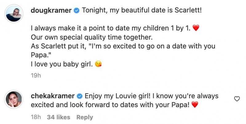 Now, it's Louvie's turn. In an IG post, Doug shared a photo of him and Scarlett and shared in his caption, “Tonight, my beautiful date is Scarlett! I always make it a point to date my children [one] by [one]. Our own special quality time together. As Scarlett puts it, "I'm so excited to go on a date with you Papa."
