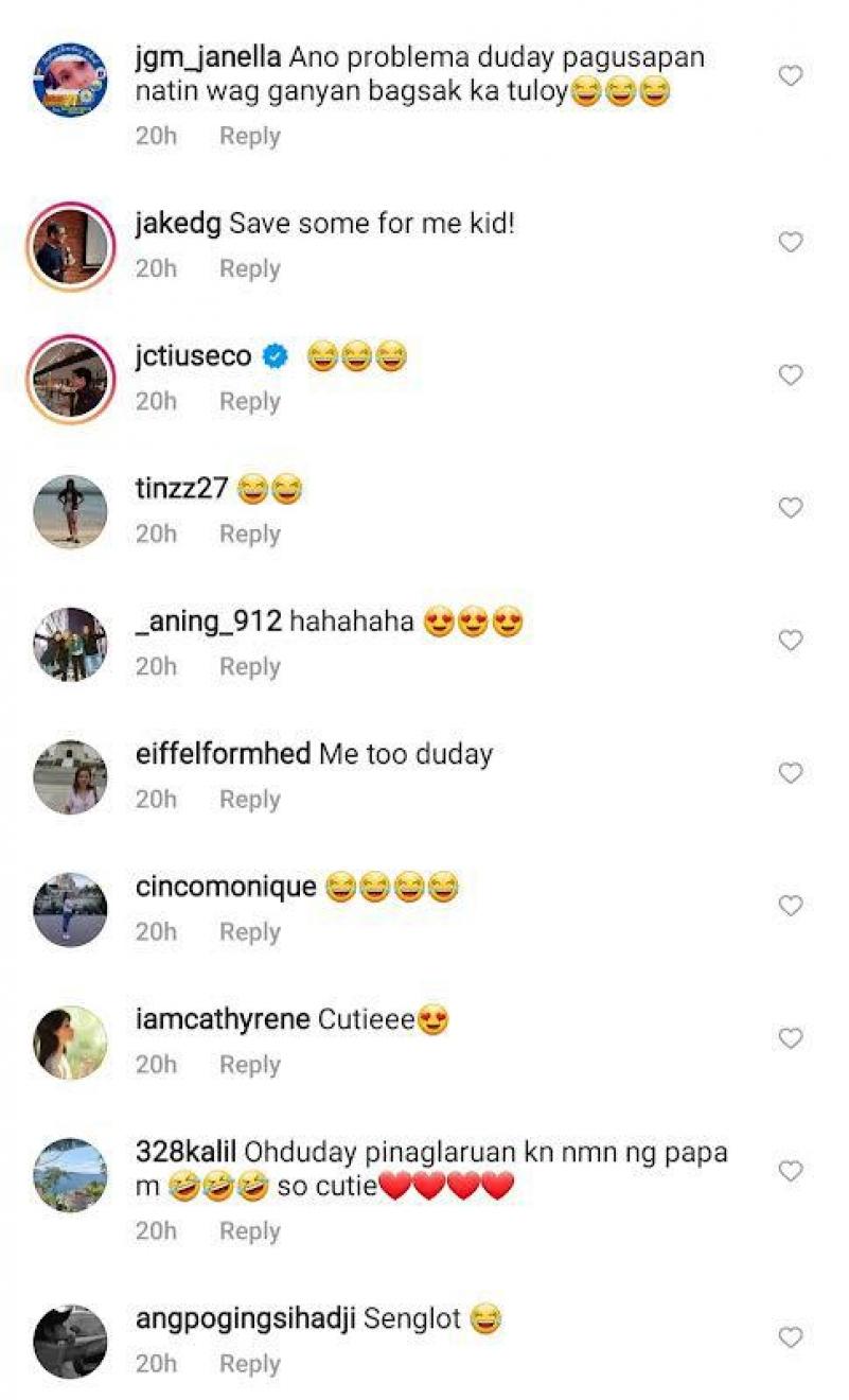"Oh Duday, pinaglaruan ka na naman ng papa mo... so cutie!" sabi pa ni @328kalil.