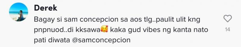 May isang netizen naman ang nagsabi na bagay daw kay Sam ang mag-perform sa All-Out Sundays stage. "Bagay si Sam Concepcion sa AOS talaga. Paulit-ulit kong pinapanood hindi nakakasawa nakaka-good vibes ang kanta na ito pati diwata."