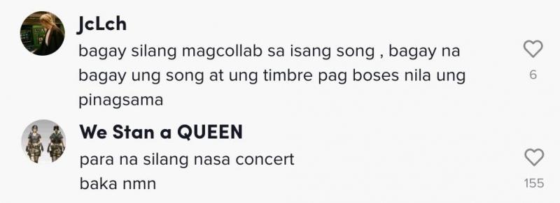 "Bagay silang mag-collab sa isang song, bagay na bagay 'yung song at ang timbre ng boses nila kung pinagsama."