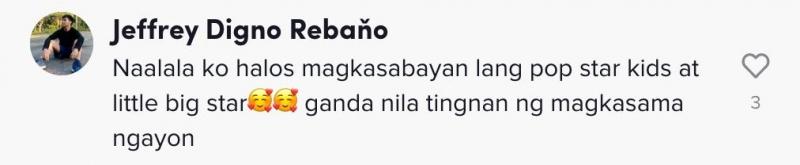 "Naalala ko halos magkasabayan lang Pop Star Kids at Little Big Star. Ang ganda nila tingnan na magkasama ngayon," saad nito.