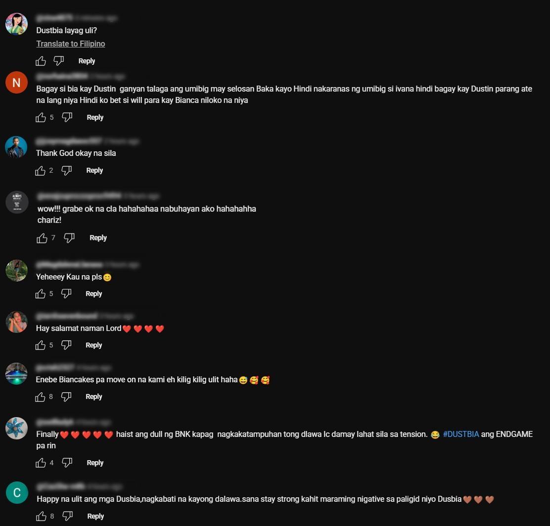 Maraming netizens ang nagkomento ng kanilang suporta dahil nagkabati na sina Dustin at Bianca.