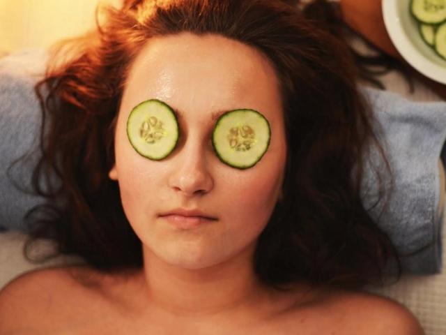 Placing chilled, sliced cucumbers over your tired eyes can help de-puff the eyes because of its caffeic acid which restricts blood vessels. Cucumbers also have vitamin C, which helps soothe irritated skin.
