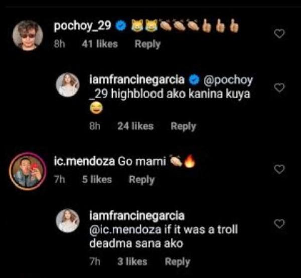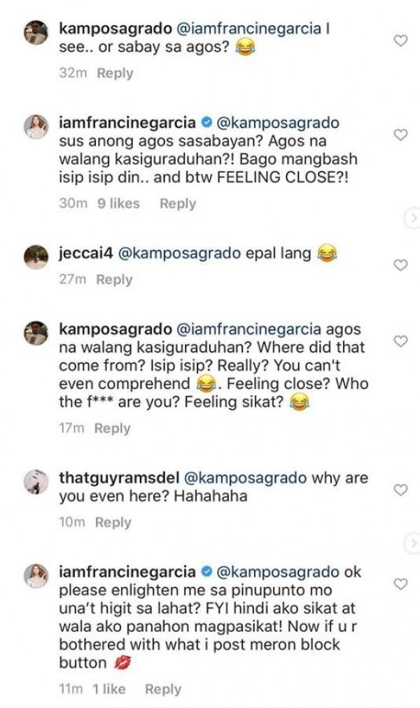 Sinabihan ng Instagram user si Francine na "feeling talent ng network" at "feeling sikat."