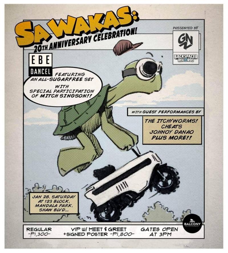 The show will take place at 123 Block, Mandala Park on January 28, 2022 (Saturday), from 4:30 p.m. onwards, and feature a full-length, all-Sugafree set by Ebe Dancel, with the special participation of Mitch Singson, as well as guest performances by Cheats, Johnoy Danao, The Itchyworms, and more.