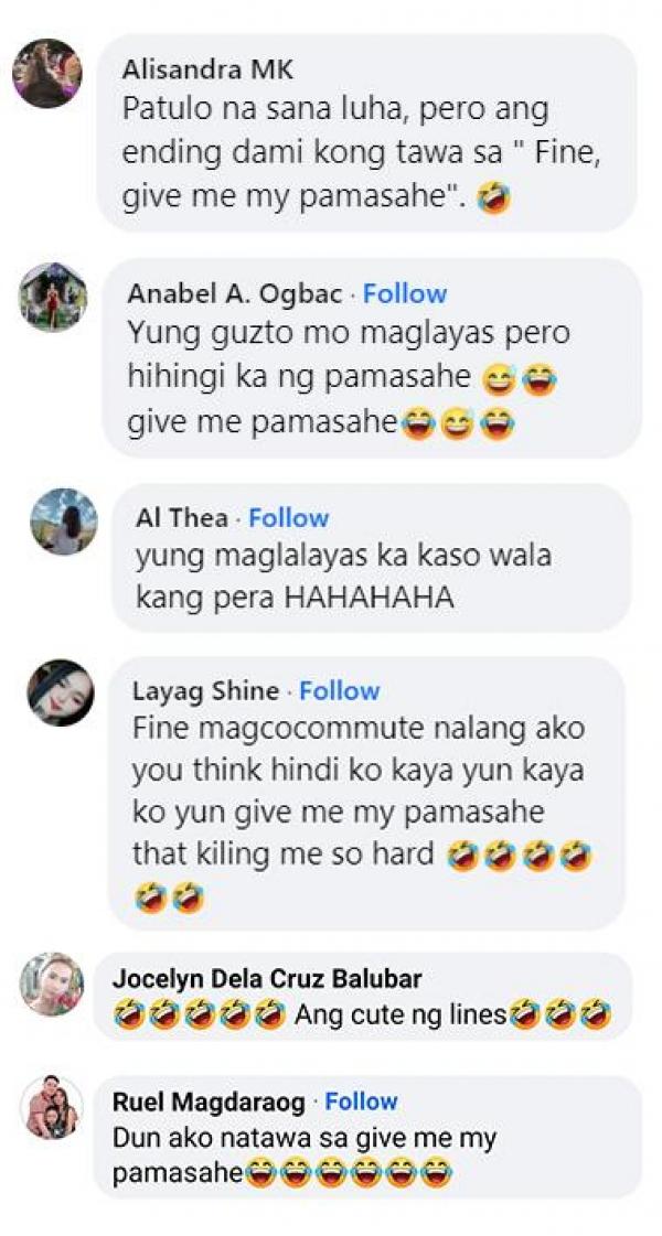 Kinaaliwan ng netizens ang eksena ng dalawang Kapuso stars, lalo na ang linya ni Caitlyn tungkol sa paghingi ng pamasahe.