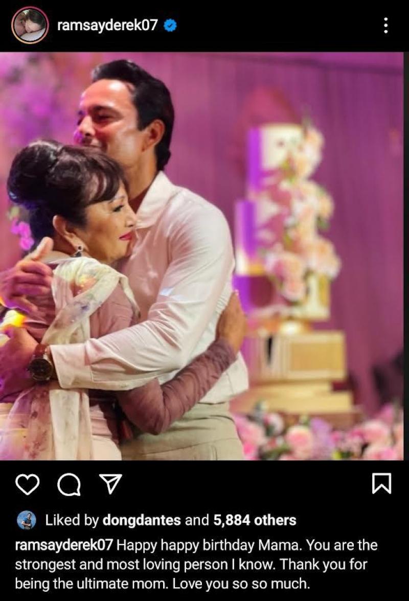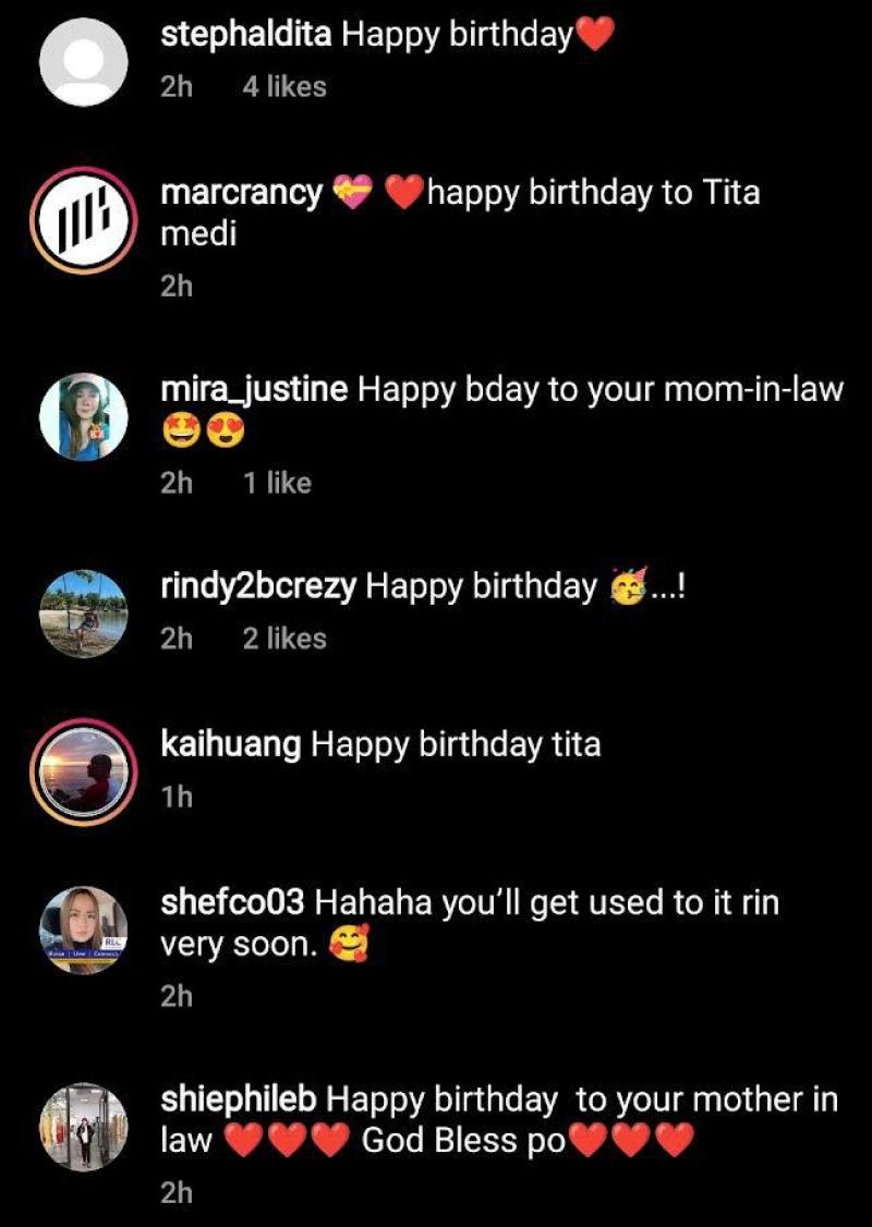 She then wrote a funny yet sweet birthday message for her husband's mom, “Happy Birthday to my kind, beautiful, wonderful and ever reliable Mom… Tita… Mom Tita? Tita Mom? Mom? Hehehe I'm not used to it yet. Momomom. I am so lucky to have you.. because.. takot na takot si Derek sayo nyahaha.”