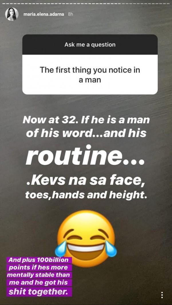 Aniya, “Now at 32, if he is a man of his word and his routine… Kebs (okay) na sa face, toes, hands, and height.