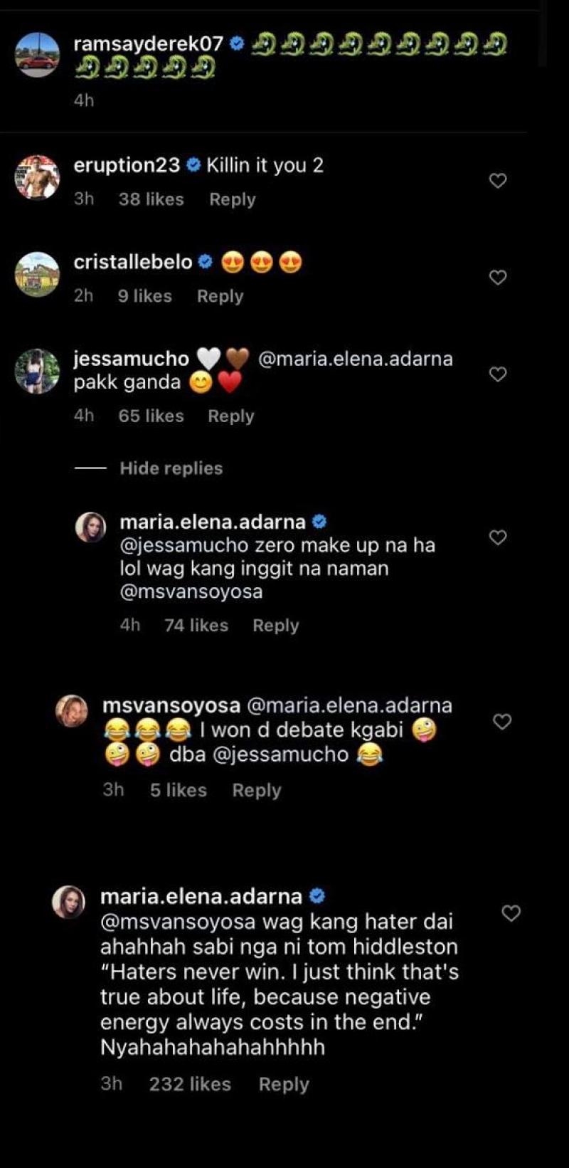 Ellen also wrote in a comment, presumably in a joking manner, "'Wag kang hater dai, haha, sabi nga ni Tom Hiddleston 'Haters never win. I just think that's true about life, because negative energy always costs in the end.'
