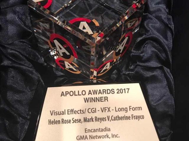 Encantadia won Best Visual Effects (Long Form category) at the 2017 Apollo Awards. The Kapuso show bested two finalists, M.S.Dhoni: The Untold Story and Housefull 3, which were both produced in India. Started in 2005, Apollo Awards honors the best in production and post-production across the Asia Pacific region.