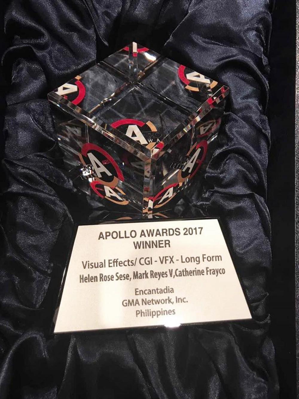 Encantadia won Best Visual Effects (Long Form category) at the 2017 Apollo Awards. The Kapuso show bested two finalists, M.S.Dhoni: The Untold Story and Housefull 3, which were both produced in India. Started in 2005, Apollo Awards honors the best in production and post-production across the Asia Pacific region.