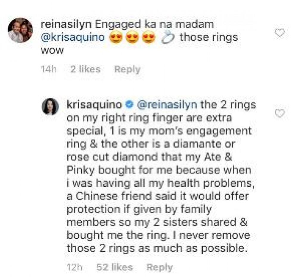 Ayon kay Kris, ang tinutukoy na dalawang singsing ng netizen ay mula sa kaniyang pamilya.