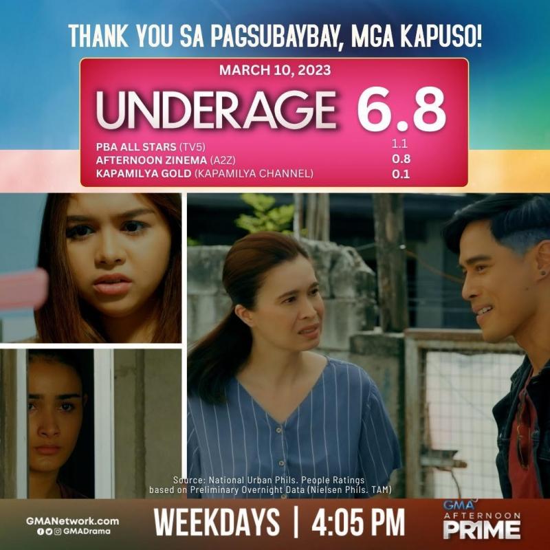 Panalo sa ratings ang 40th episode ng GMA Afternoon Prime series na 'Underage' na ipinalabas noong nakaraang Biyernes (March 10).