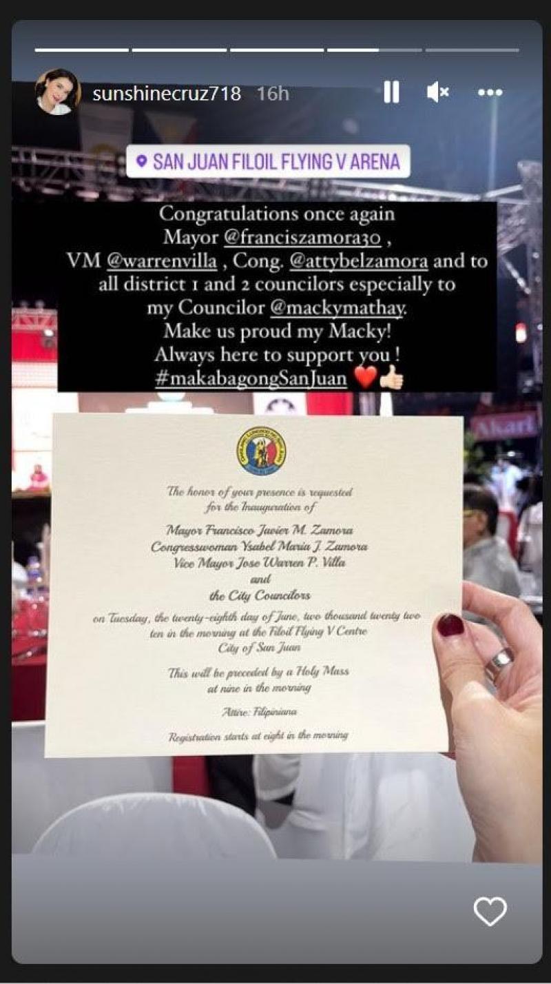 Meanwhile, former Kapag Nahati Ang Puso actress Sunshine Cruz also witnessed the oathtaking of her long-time boyfriend Macky Mathay, who also won as city councilor.
