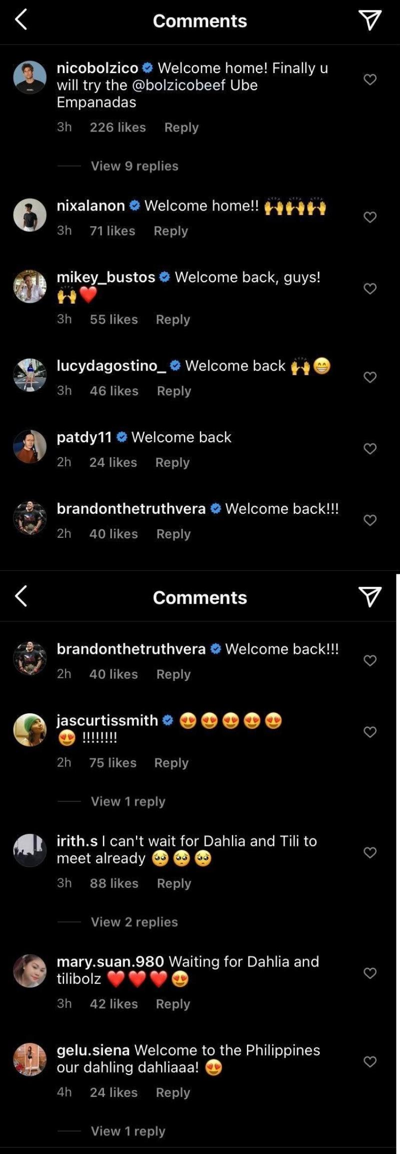 Celebrity friends including his brother-in-law Nico Bolzico and sister-in-law Jasmine Curtis-Smith commented on Erwan's homecoming post.