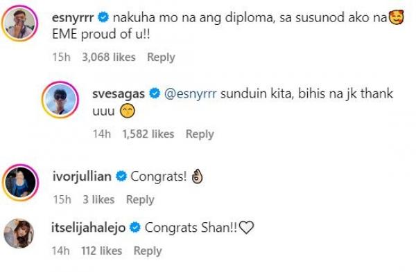 A quick check in the comment section of his post showed that his onscreen partner in the hit kilig YouTube series “Highschool,” Esnyr Ranollo, was among those who congratulated him on this new milestone.