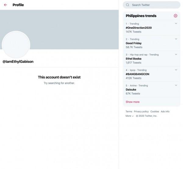 As of press time, the username “IamEthylGabison” is currently unavailable.