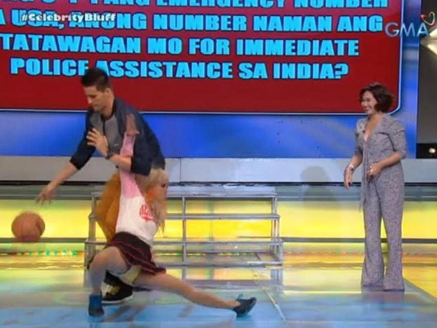 Nakipag-basketball showdown si Eugene Domingo at ang bluffers sa kanilang guests na basketball players sa Celebrity Bluff.
