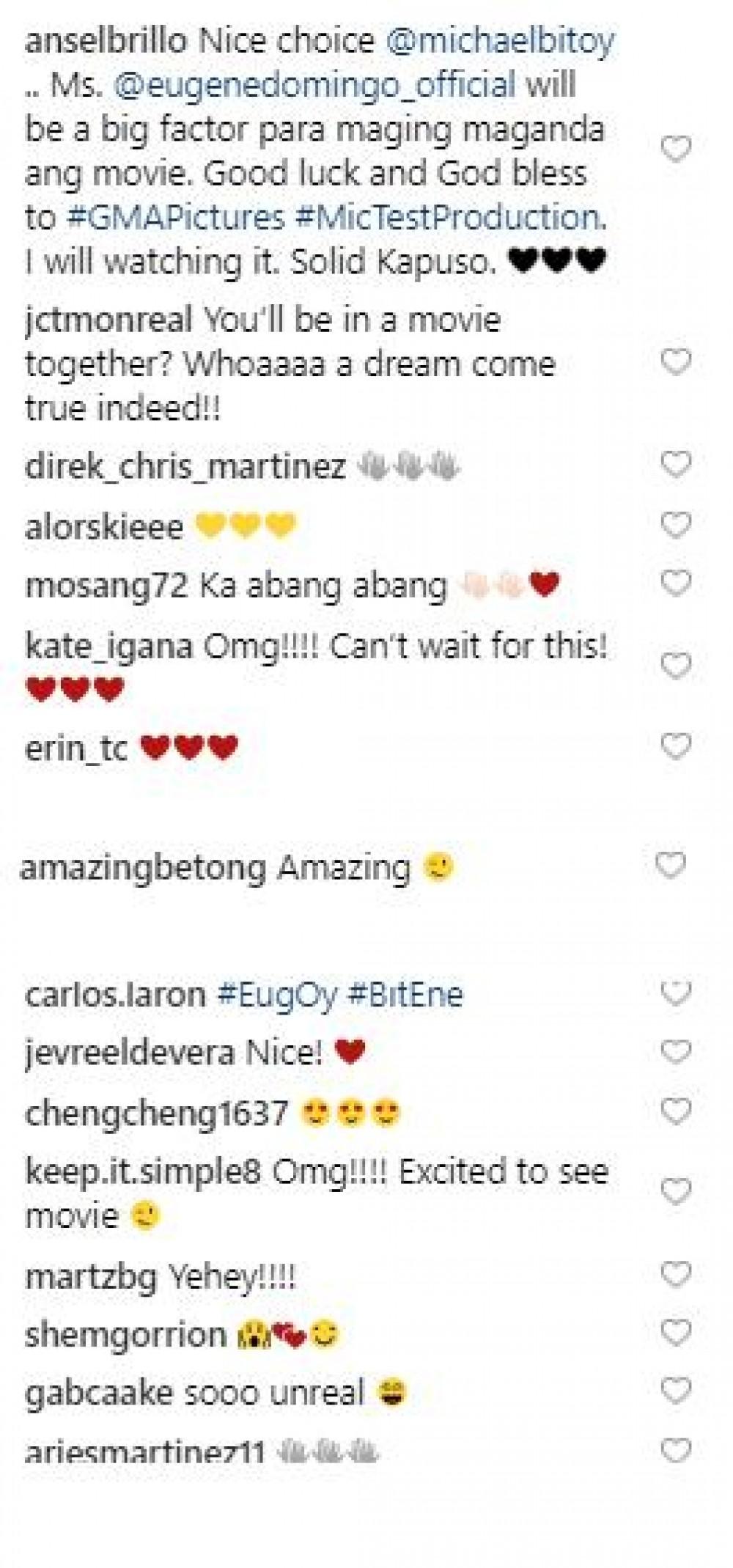 In her Instagram post, Eugene thanked Bitoy for giving her a cameo role in the film. “A dream come true. Thank you, Michael, @michaelbitoy for choosing me! #familyhistory”