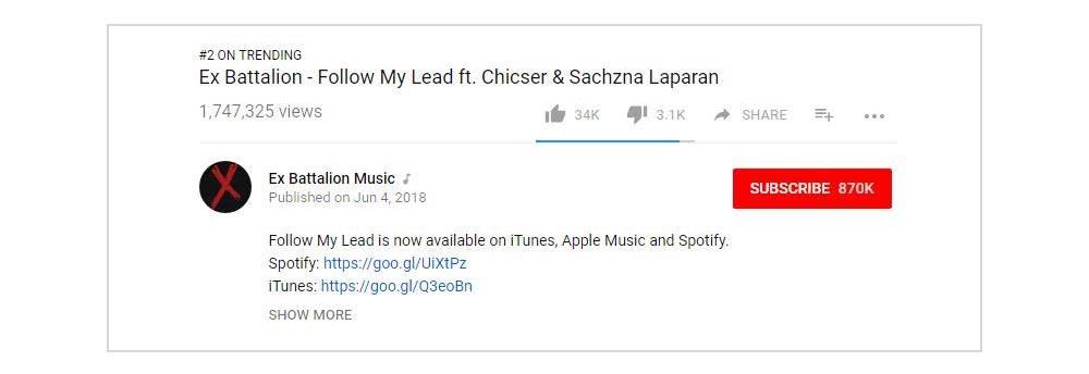 Umabot na ng mahigit one million views sa loob ng isang araw ang bagong music video ng Ex Battalion para sa kantang “Follow My Lead” ft. Chicser & Sachzna Laparan.