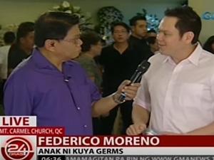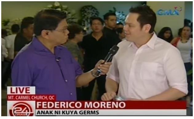 Federico Moreno, the son of the Master Showman German “Kuya Germs” Moreno, in an exclusive interview with 24 Oras tonight expressed his gratitude for all the messages that their family have been receiving during this difficult moment.