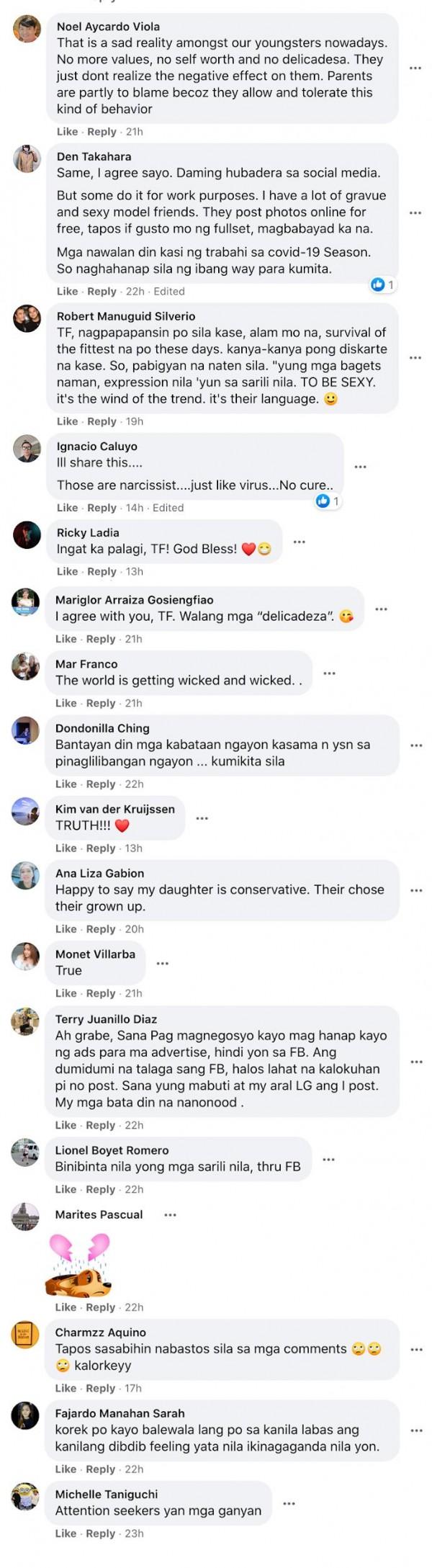 Ani ng isang netizen, “This is a sad reality amongst our youngsters nowadays. No more values, no self-worth, and no delicadesa. They just don't realize the negative effect on them. Parents are partly to blame because they allow and tolerate this kind of behavior.”