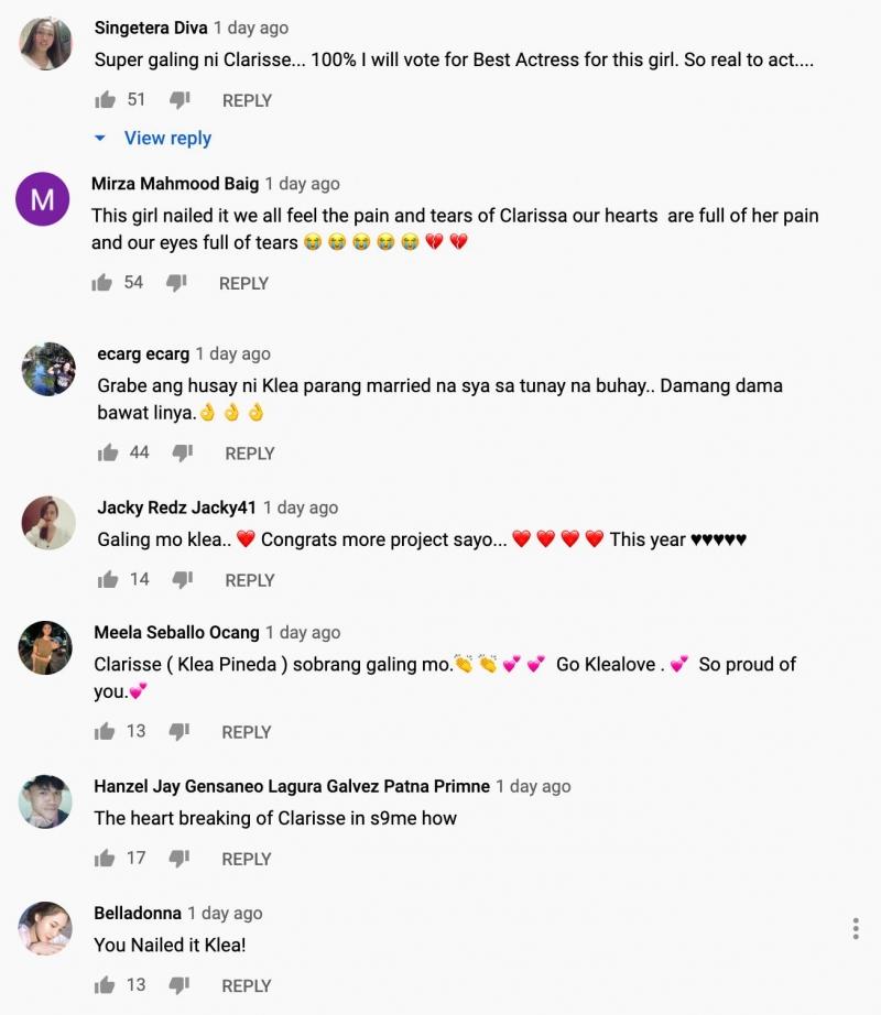 Ani naman ng isa, “This girl nailed it! We all feel the pain and tears of Clarisse. Our hearts are full of her pain and our eyes are full of tears.”