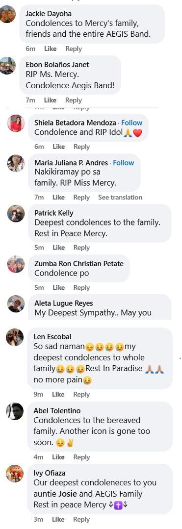 There was an outpouring of support and condolences for the family of Mercy Sunot after the confirmation of her death with many fans paying tribute to the Filipina rock icon on social media.