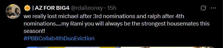 Meron ding pumuna na magkasunod na nawala sa Bahay ni Kuya ang dating magkaduo na sina Michael at Ralph. Saad pa ng netizen, sila pa rin ang strongest housemates para sa kanila.