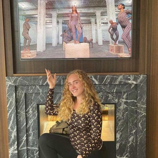 Adele kneeling for Queen Bey/ Source: adele (IG)