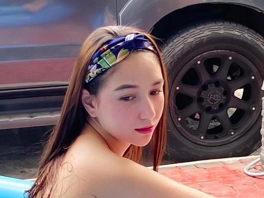 Since she is unable to visit any beach or pool, the Bubble Gang babe has decided to cool down by enjoying a quiet time in an inflatable swimming pool.