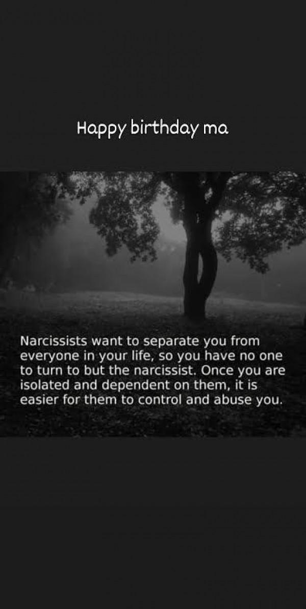 “Happy birthday, ma,” she wrote along with a post that defined the word “narcissist.”