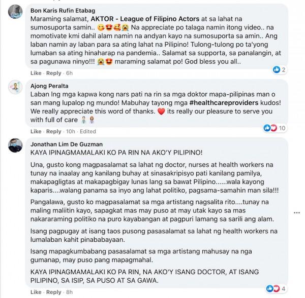 One netizen wrote, "Thank you po sa pagpaparamdam ng pasasalamat sa aming mga sakrpisyo. Mula sa aming mga frontliners, lalaban tayo sa pandemic."
