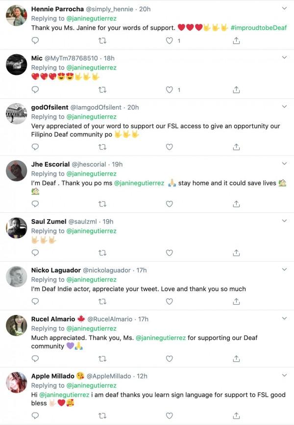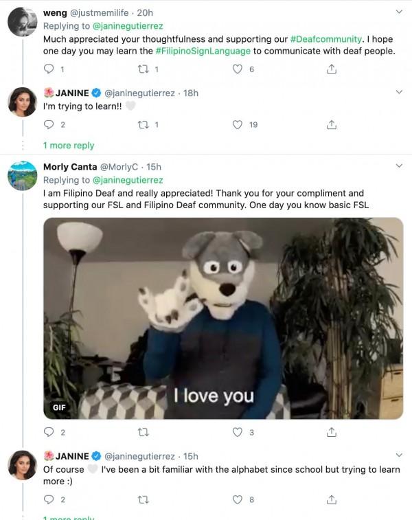 Filipino deaf community commend Janine Gutierrez. | Credits to janinegutierrez (Twitter)