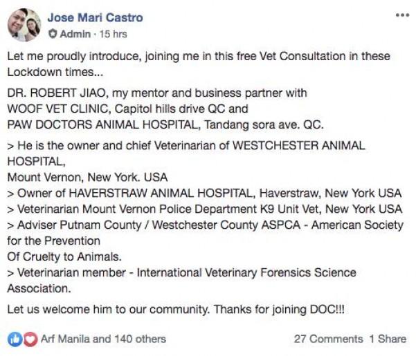 Filipino veterinarians Doc Jose Mari Castro and Doc Gen Maala Castro spearheaded Consult A Vet back on November 26, 2015. And now that the world is going through a health crisis because of COVID-19, they're offering free online consultation as their way of helping out fur parents and fur babies during this challenging time.