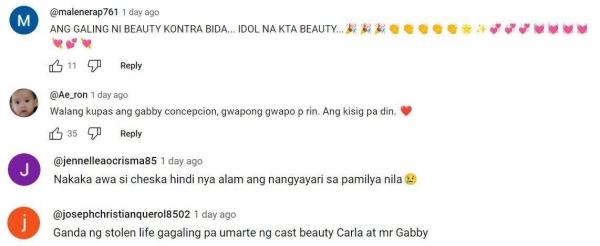 "Ganda ng stolen life gagaling pa umarte ng cast beauty Carla at mr Gabby."
