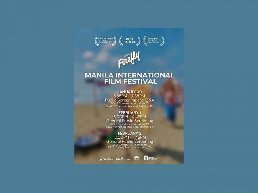 Firefly, produced by GMA Pictures and GMA Public Affairs, will be showcased in the United States as part of the Manila International Film Festival beginning January 30.