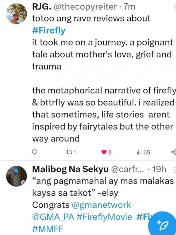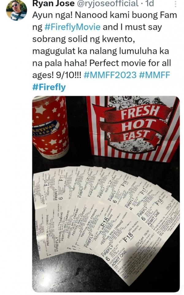 Patuloy na tinatangkilik ng Pinoy viewers ang Firefly, isa sa mga pelikulang kabilang sa 2023 Metro Manila Film Festival.
