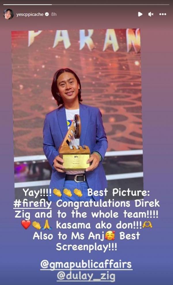 Firefly director Zig Dulay gladly thanked everyone as he shared his photo holding the Best Picture trophy on his social media accounts.