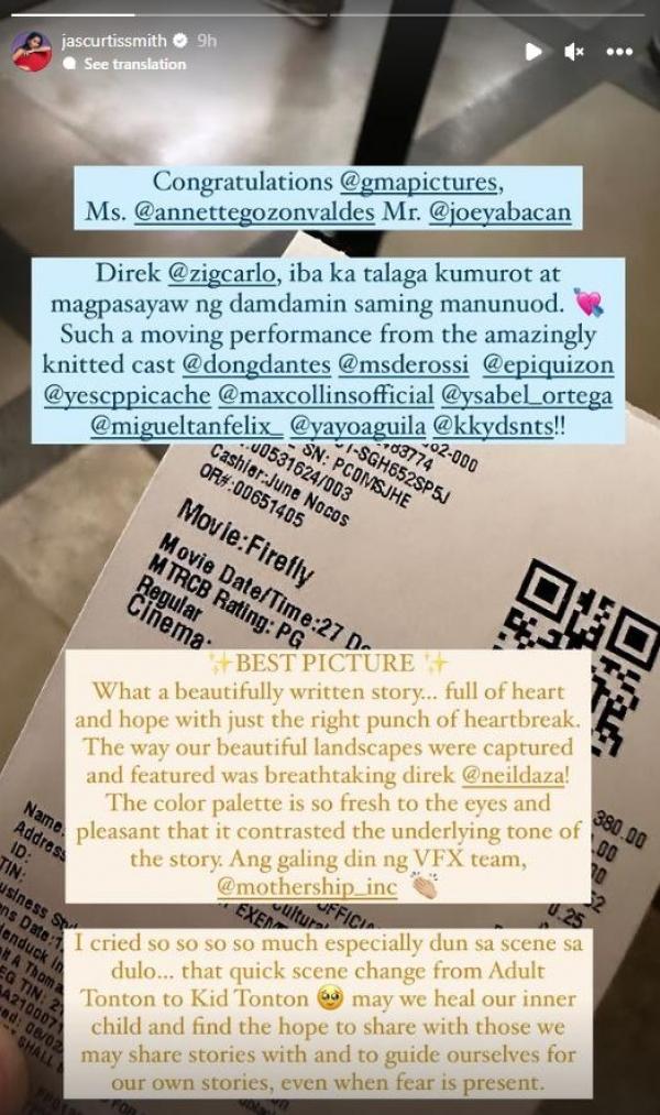 One of the actresses in the film, Cherry Pie Picache, congratulated everyone on her Instagram Story.