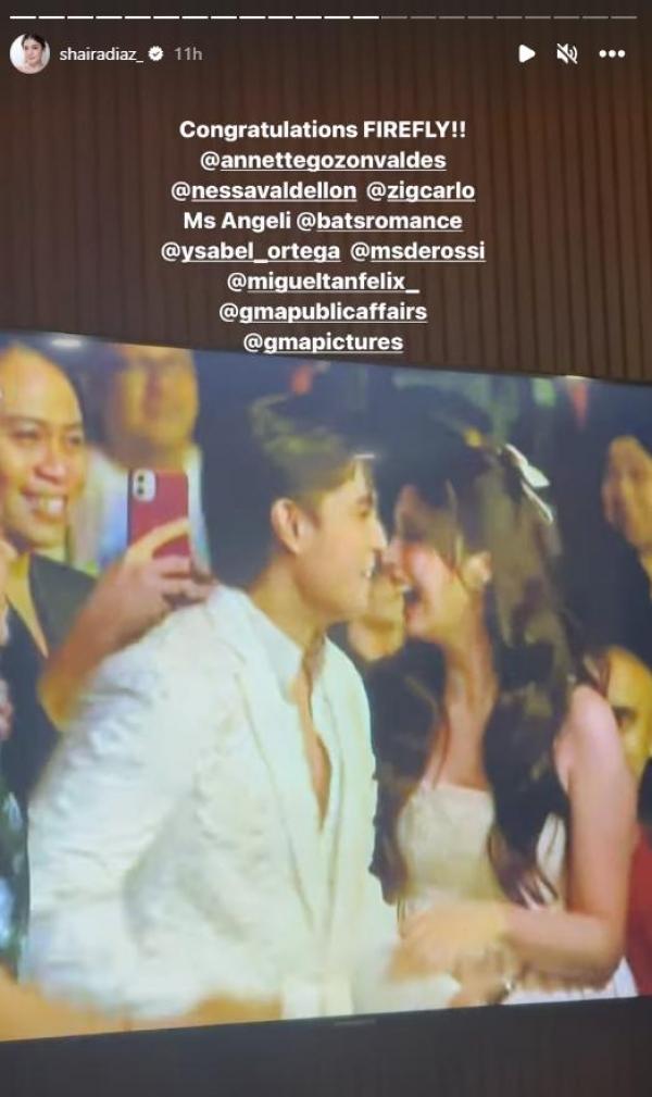 Unang Hirit's mainstay host Shaira Diaz sent her congratulations to the team in her social media, sharing a video of her watching the awards night on the television.
