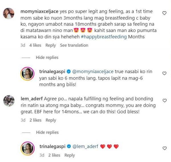 “Ngayon malapit na siyang mag 6 months, exclusively breastfeeding pa rin. Ang bilis! Breastfeeding ang pinaka-rewarding at fulfilling na nagawa ko bilang isang ina. Hindi ko ito ipagpapalit kahit sa anupaman sa mundo.”