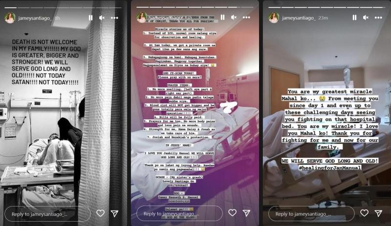 Jan's wife, Jamey Keeneth Santiago-Manual took to Instagram Story to share the condition of her husband.