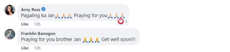 Meanwhile, one of Jan's former co-star in the Kapuso gag show, Arny Ross took to Facebook and wished him a speedy recovery.