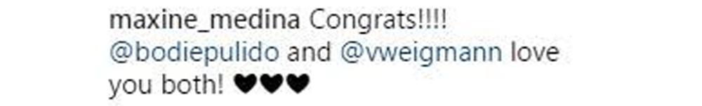 Miss Universe Philippines 2016 Maxine Medina greeted the soon-to-be Mr. and Mrs. Pulido for their engagement.